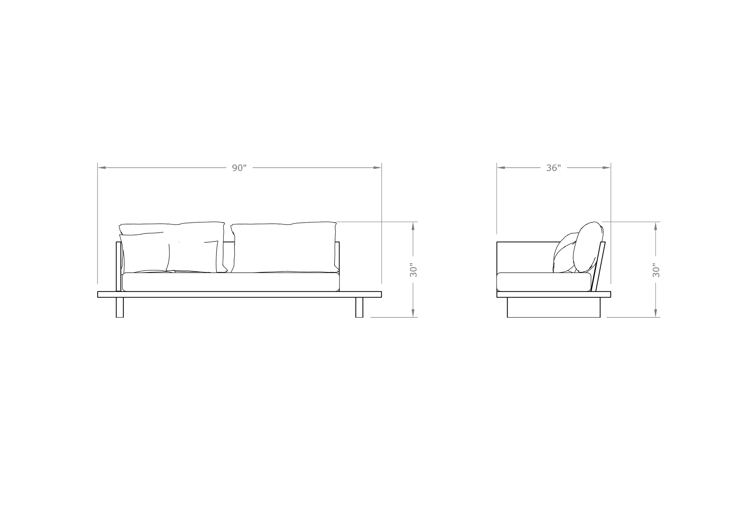 • Dimensions (in) : 90in L x 36in D x 30in H