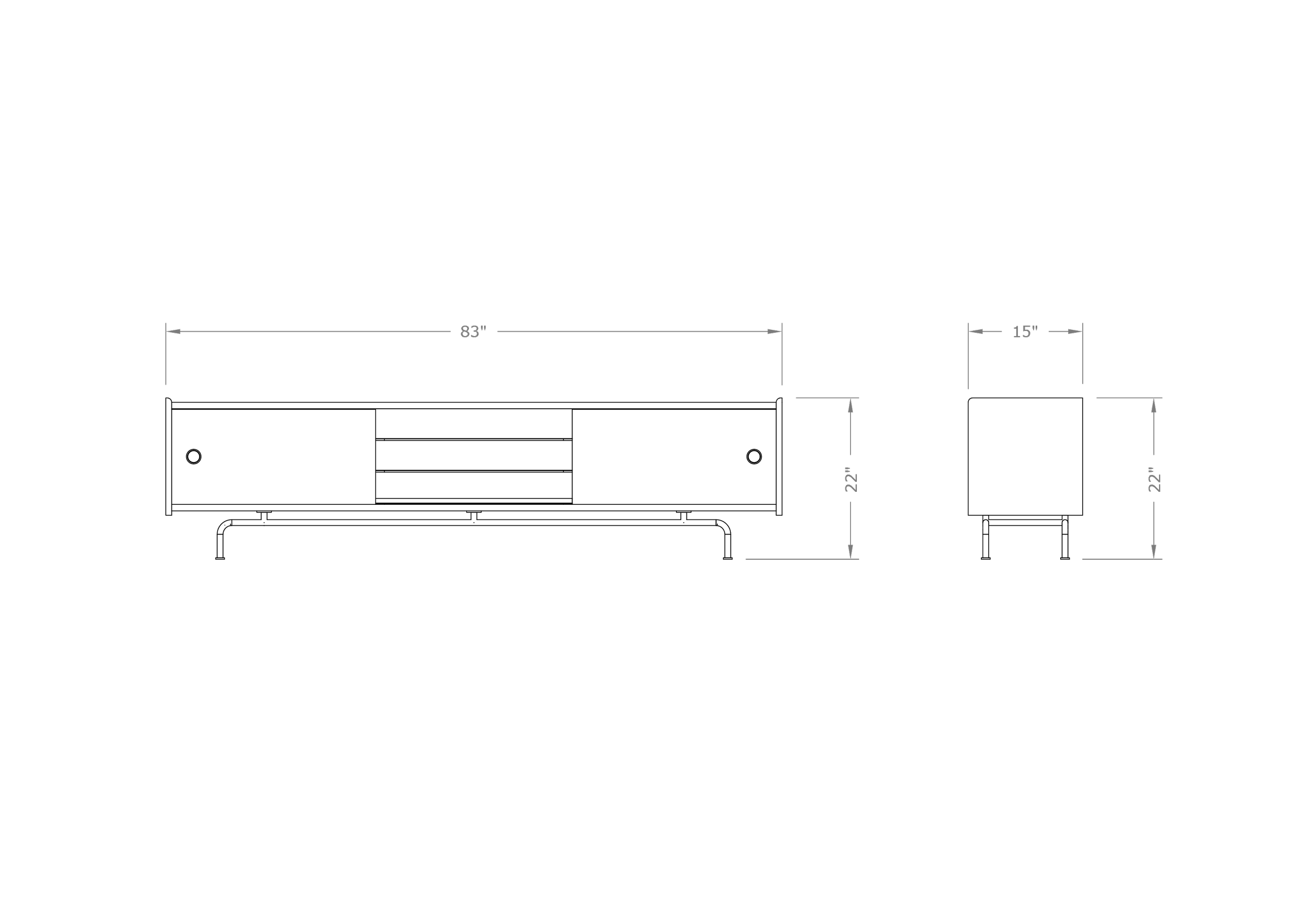 • Dimensions (in) : 83in L x 15in D x 22in H